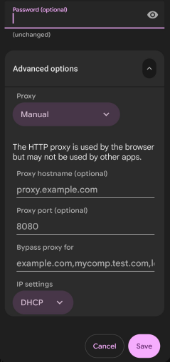 Enter the proxy hostname as your PC IP that runs the mitmweb, port as 8080 and save it. Do note, while the webui for the proxy runs on 8081, the actual proxy runs on port 8080.