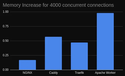 You might be as well surprised how apache held almost equal to traefik and caddy. Infact better than NGINX, while the outside world thinks otherwise. These graphs are only taking 4000 concurrent connections into consideration. Apache crashed when we tried to load it with anything more than 4000 :)